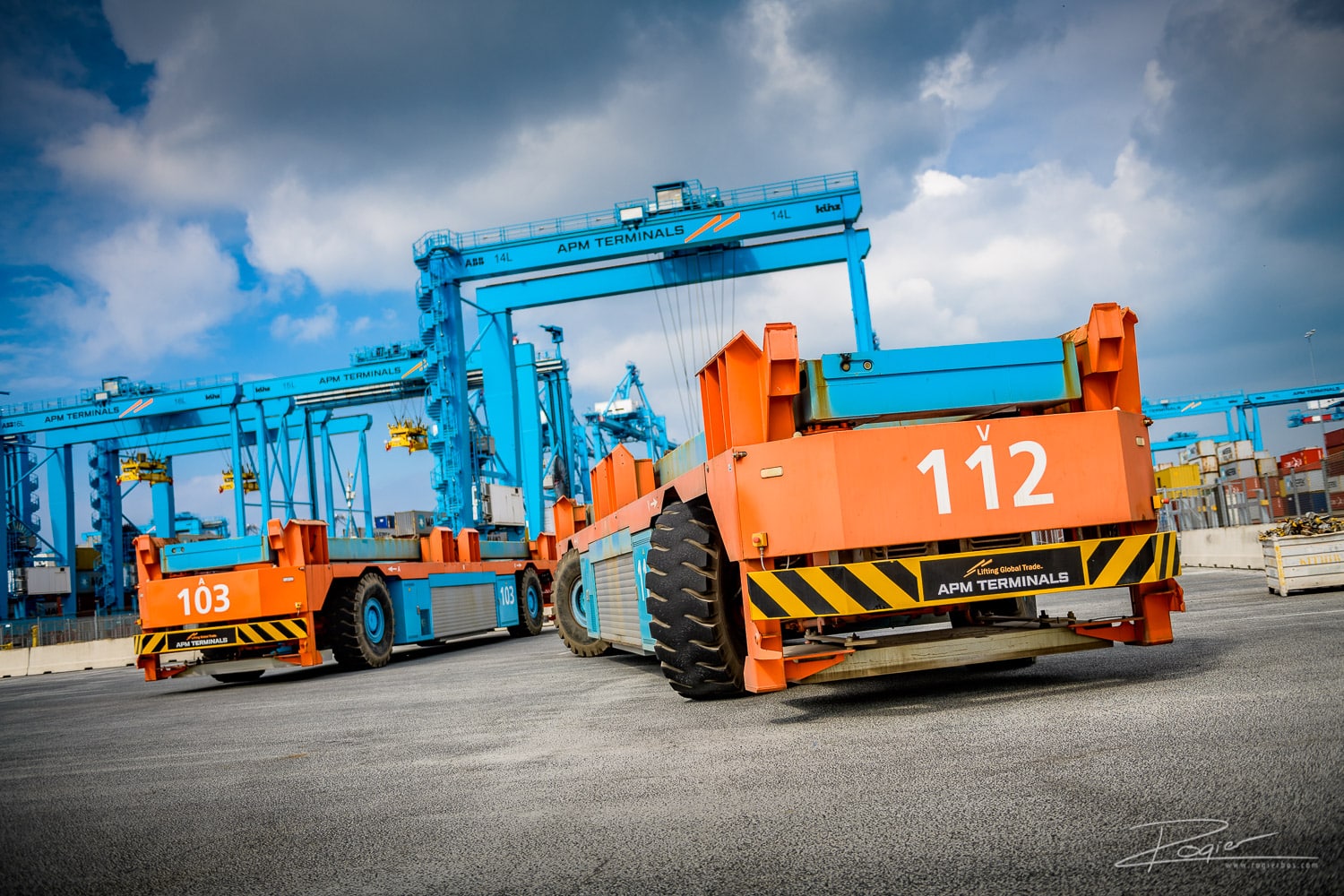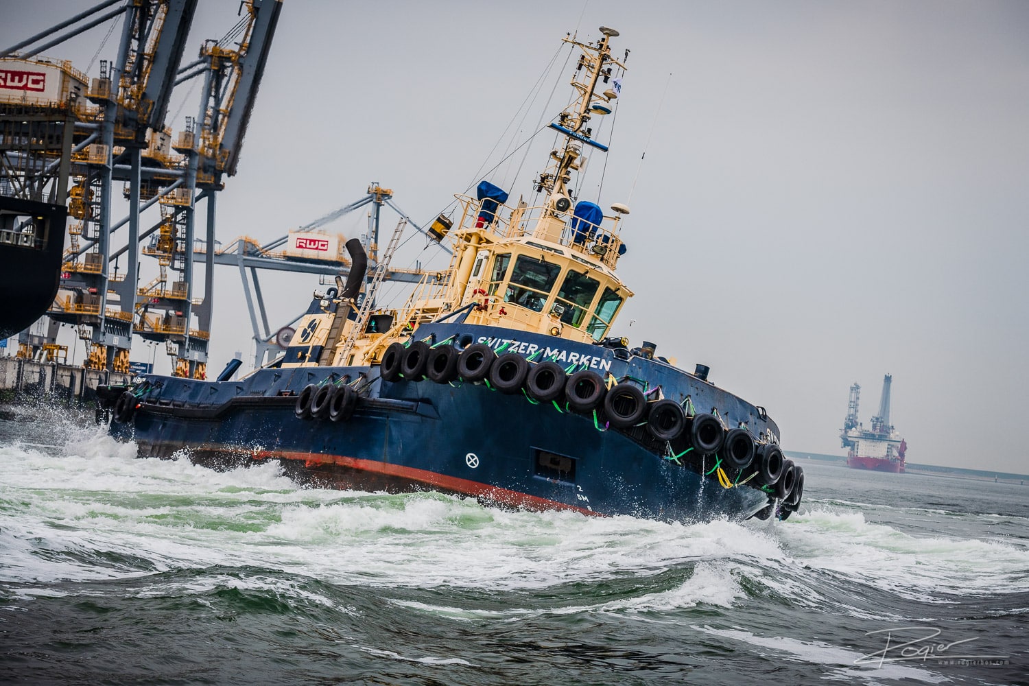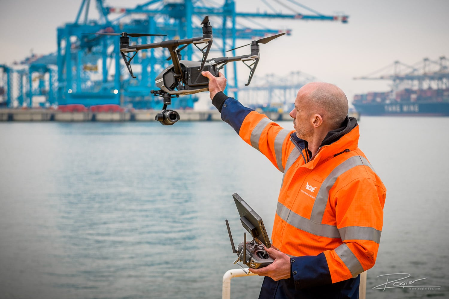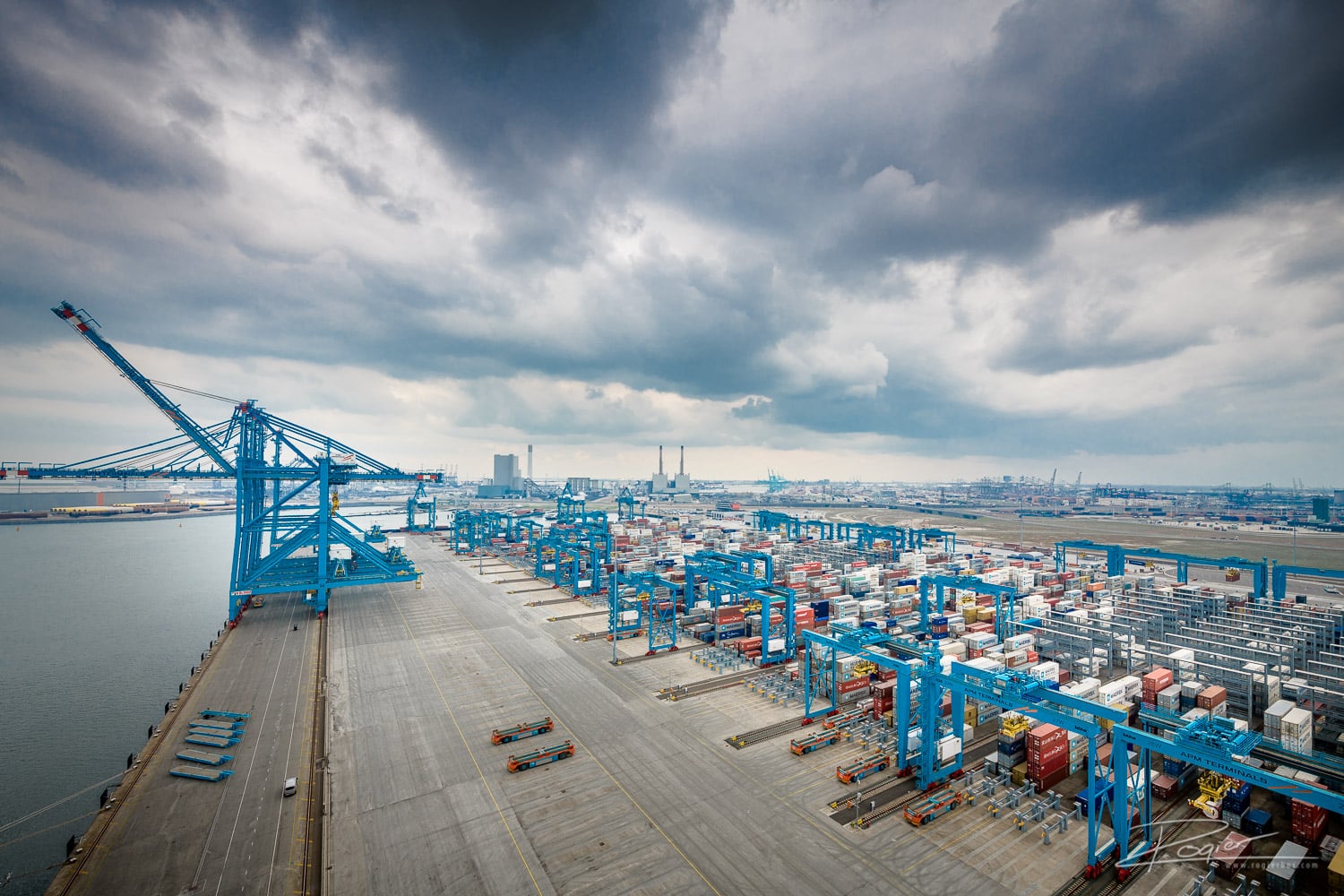 I was asked to photograph the production of an episode of the show that was recorded in Rotterdam. The biggest containership in the world was visiting our port. The port of Rotterdam is one of the biggest ports in the world, and at any point in time a number of big containerships are in the port. The biggest cranes in the world offload them. The ships are navigated through the port by some of the most powerful tugboats. Plenty of material there to make an interesting episode! Also, a total thrill for this portrait and industrial photographer, because a production team like that gets to see lots of special places and record amazing angles. We did our recording at the APM container terminal, and they were amazingly accommodating and hospitable. I frequently get to special places and am given special demonstrations, but this was on another level all together!