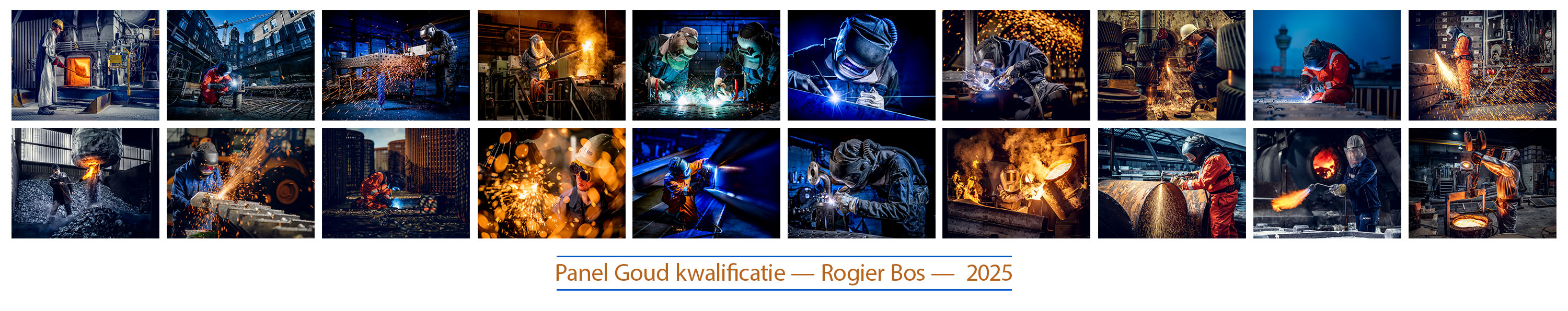 Voor deze kwalificatie presenteerde ik een panel van twintig industriële foto’s rond het thema “Vlammen en Vonken”. De beelden laten het vakmanschap zien van mannen en vrouwen die dagelijks werken in de metaalindustrie: lassers, smelters, gieterijmedewerkers en metaalbewerkers die in alle stilte hun werk doen, maar ondertussen dingen maken waar wij elk uur van elke dag gebruik van maken: de bruggen waar we overheenrijden; de vervoersmiddelen waarmee we ons verplaatsen, en gebouwen waar we in wonen en werken.