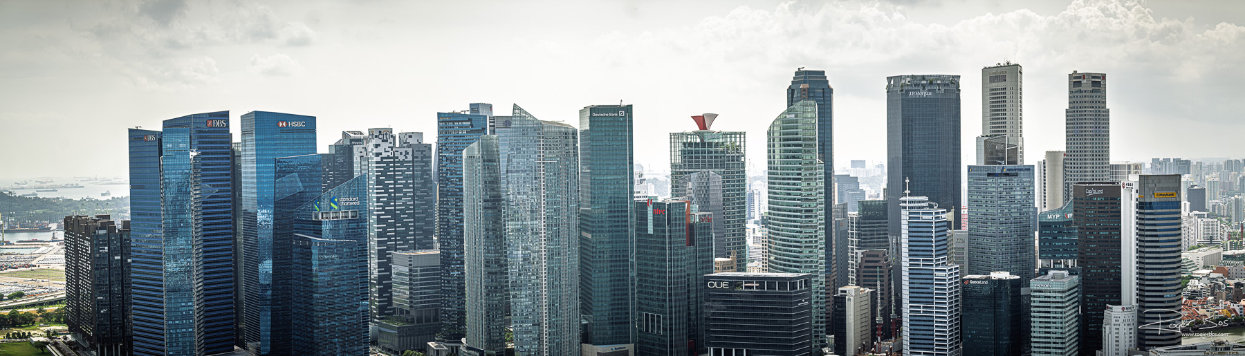 Panoramic view of Singapore downtown skyline with modern skyscrapers and financial district