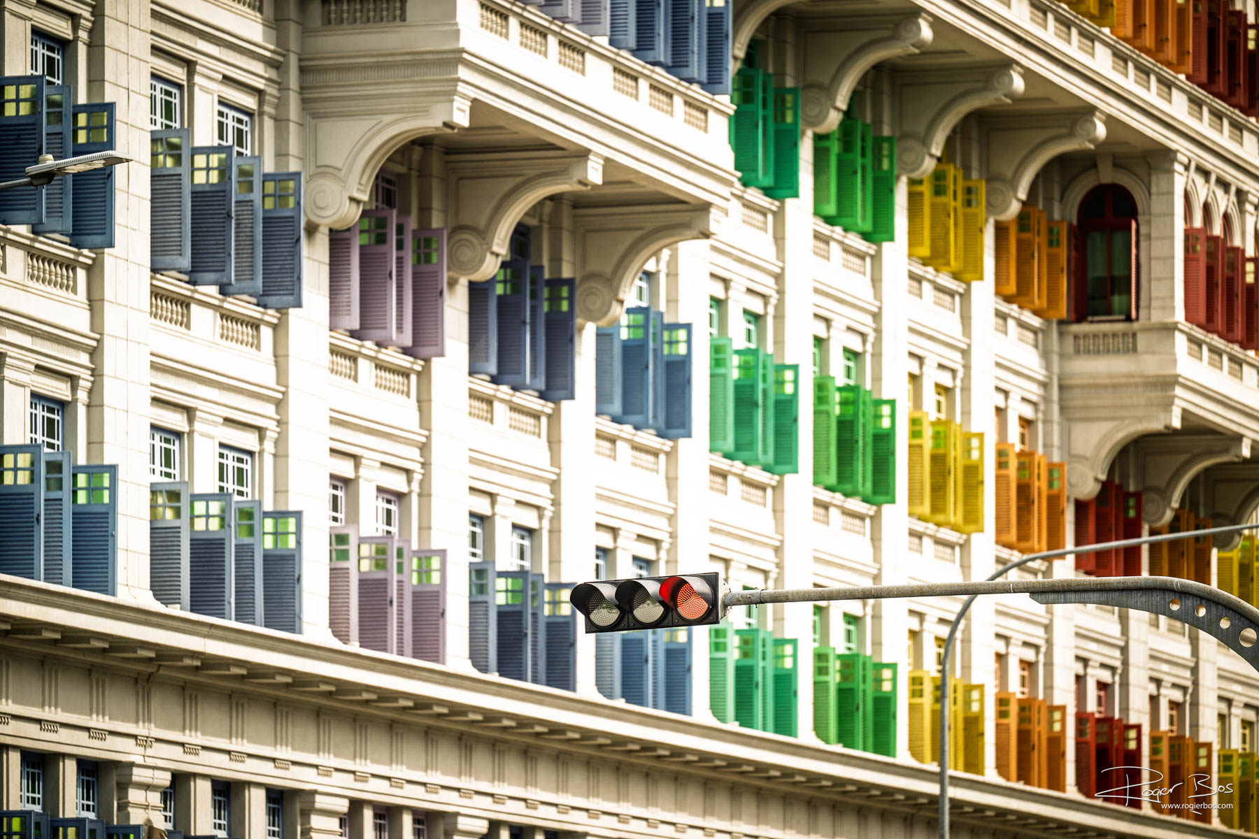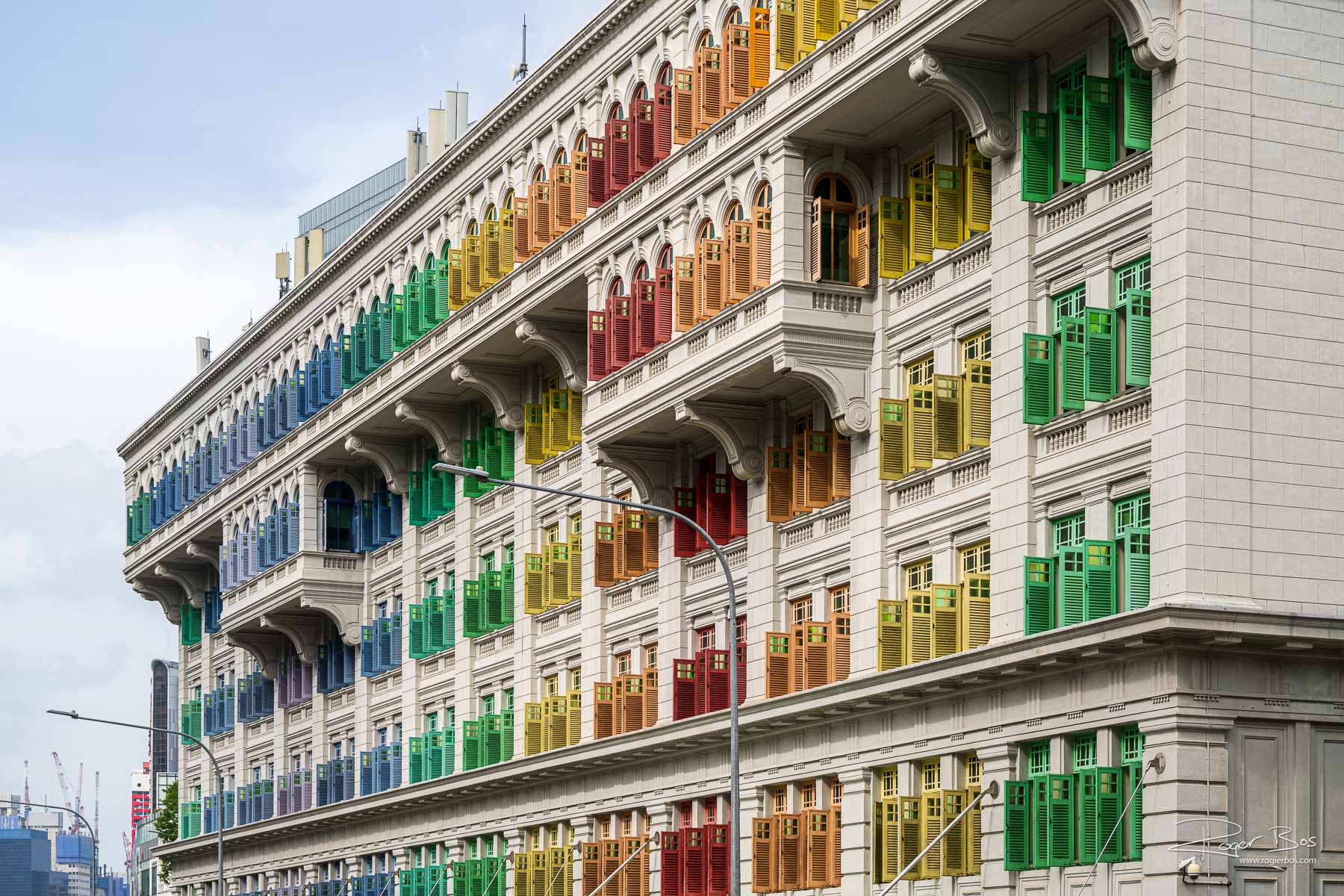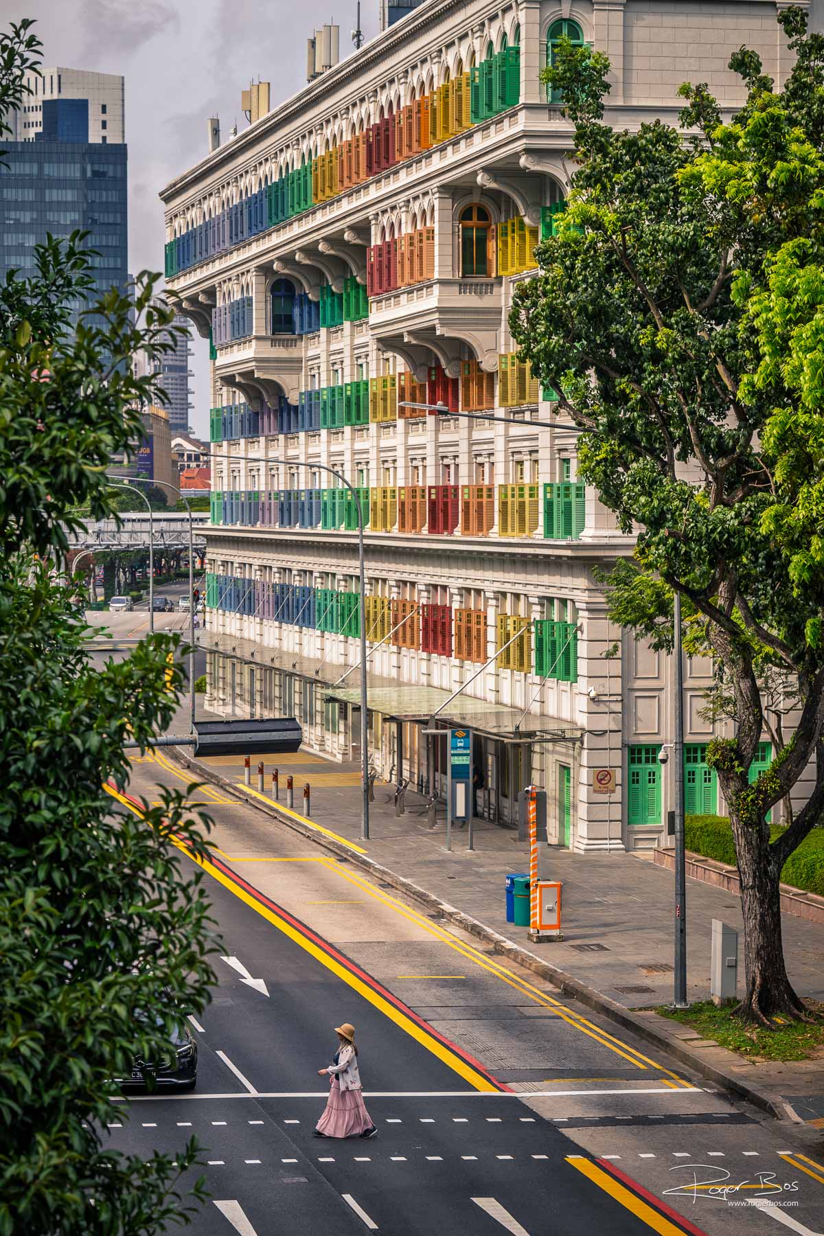 What makes the building visually unique is the hundreds of timber shutters painted in a full spectrum of colours — often said to represent the diversity of Singapore. For photographers, this building is a gift. The combination of classical colonial architecture and the almost graphic use of color creates endless possibilities. You can shoot it symmetrically from the front, explore repetition and rhythm from an angle, or isolate details for more abstract compositions.